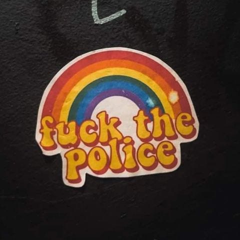 One of my absolute favourite street art things is anti-establishment stuff, which is often actually REALLY easy to do without being caught. You can quickly paste a sticker on a pole, no problem. Or write on a wall real quick with a paint marker: